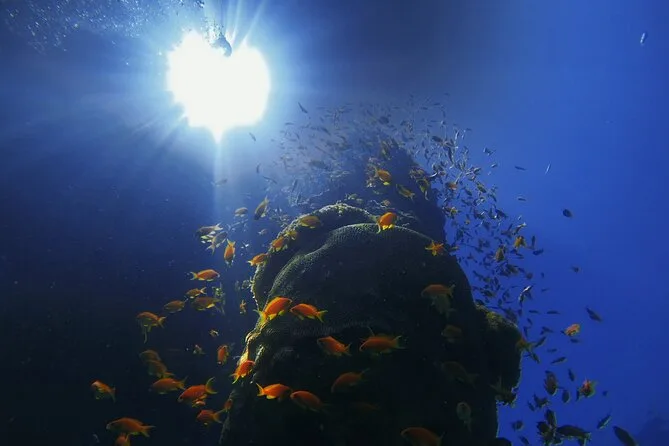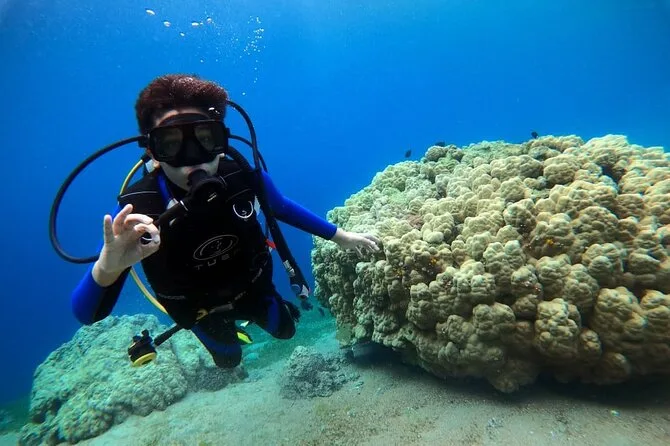 Seus três dias incluem transporte privado todas as manhãs do hotel ou ponto de encontro em Aqaba, todo o equipamento de SCUBA (e snorkel se quiser), acesso completo às aulas teóricas online ou em manual antes do treino prático, nove mergulhos guiados por instrutores certificados (incluindo a primeira instrutora mulher da Jordânia), todas as taxas e impostos pagos, WiFi grátis no centro de mergulho e fotos subaquáticas feitas durante as sessões em mar aberto antes de voltar à tarde.