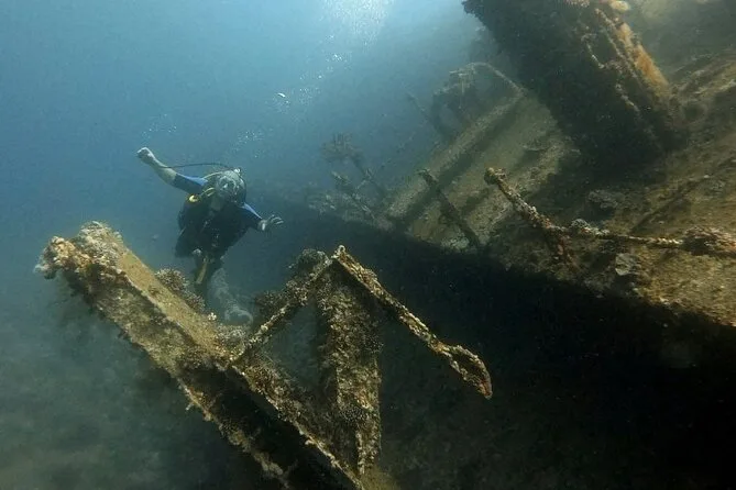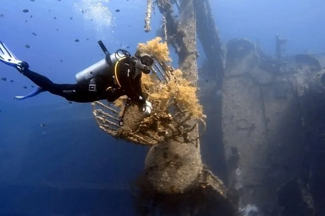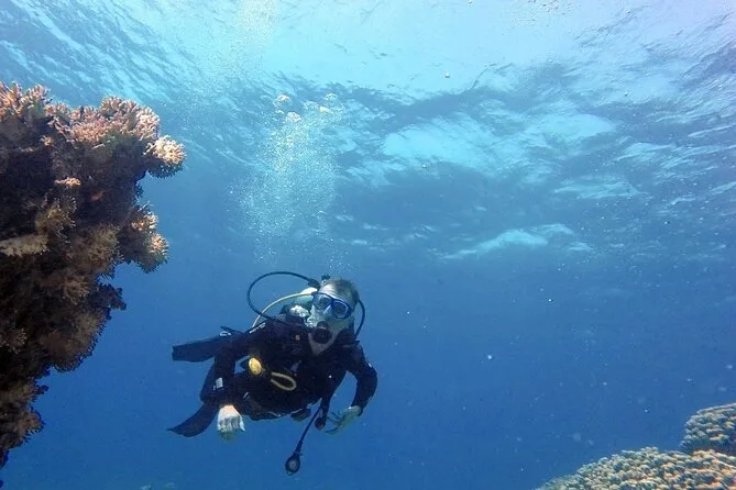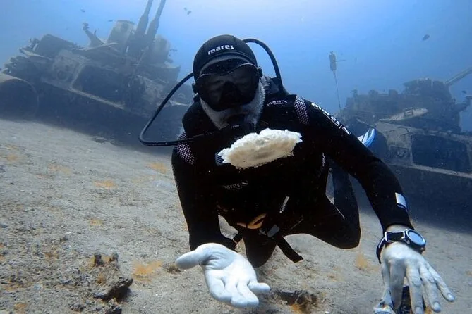 Seu dia inclui transporte privado do hotel em Aqaba, uso completo de equipamento de mergulho de qualidade no Hammerhead Diving Center, acompanhamento de instrutores locais experientes durante os dois mergulhos (como no Cedar Pride e “o Tanque”), além de água e chá doce entre os mergulhos, com retorno confortável ao hotel ou outro local na cidade.