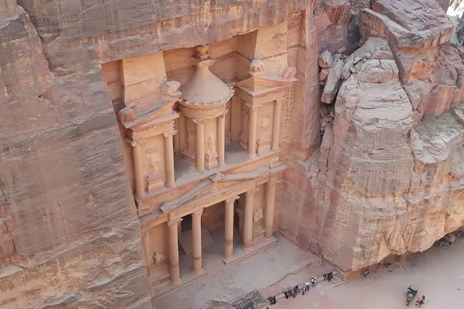 Você vai explorar os mosaicos antigos de Madaba, flutuar no Mar Morto, caminhar pelas trilhas empoeiradas de Petra com um guia local e se aventurar de jipe nas areias vermelhas de Wadi Rum. Com transporte privado e horários flexíveis, terá tempo para aproveitar cada momento e criar memórias que vão durar para sempre.