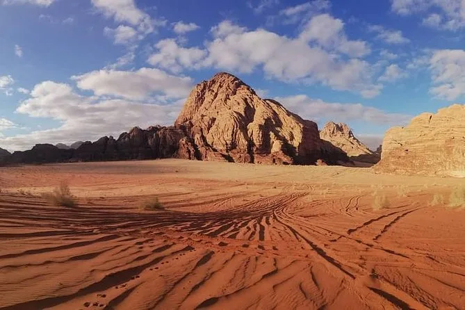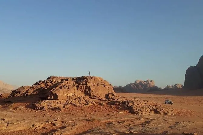 Está incluído um passeio de 4 horas de jipe 4x4 dentro da área protegida de Wadi Rum.