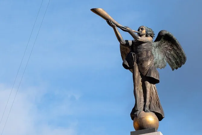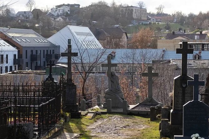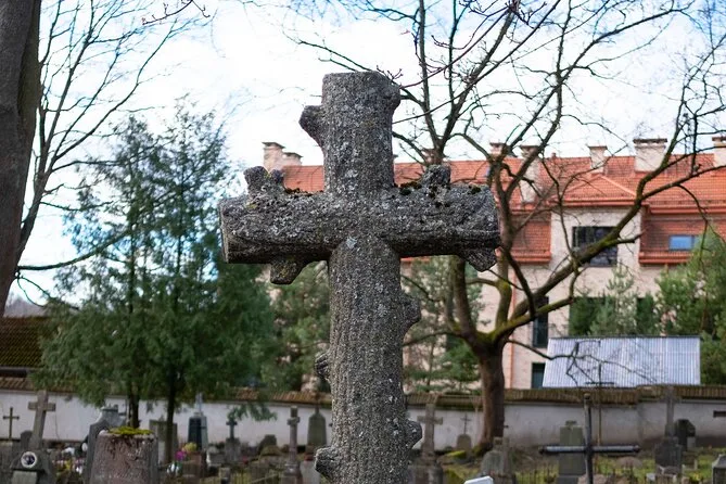 Nosso último grande ponto foi Uzupis—a chamada “República” com sua própria constituição afixada em placas espelhadas pela Rua Paupio. O ar tinha um leve aroma de incenso e grãos de café enquanto cruzávamos esse bairro excêntrico cheio de artistas e poetas. Poucos minutos depois, passamos pelo cemitério mais antigo da cidade—silencioso, exceto pelo canto dos pássaros e o som dos cascalhos sob nossos pneus.