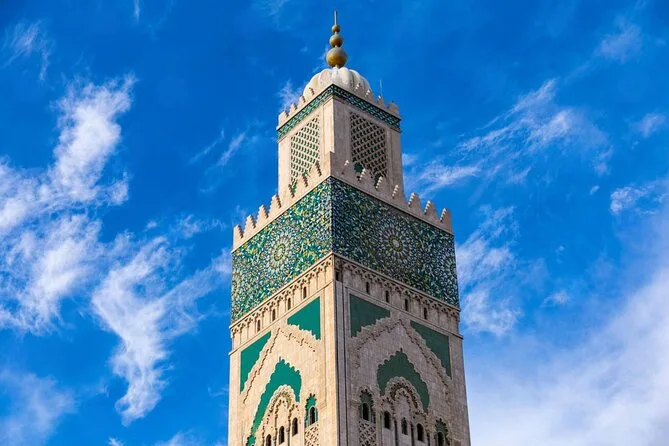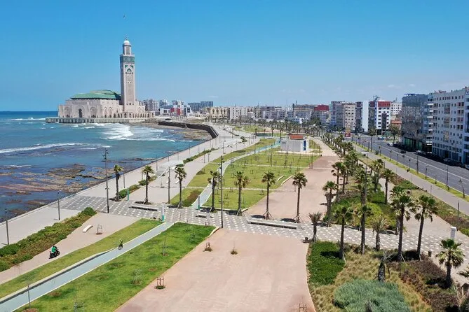O dia inclui transporte com ar-condicionado e Wi-Fi para buscar e levar você ao hotel; água engarrafada; ingresso sem fila para a Mesquita Hassan II; guia local multilíngue e simpático que ajuda com fotos; além de várias paradas para lanches e café enquanto exploram juntos os principais pontos de Casablanca antes de voltar ao hotel.