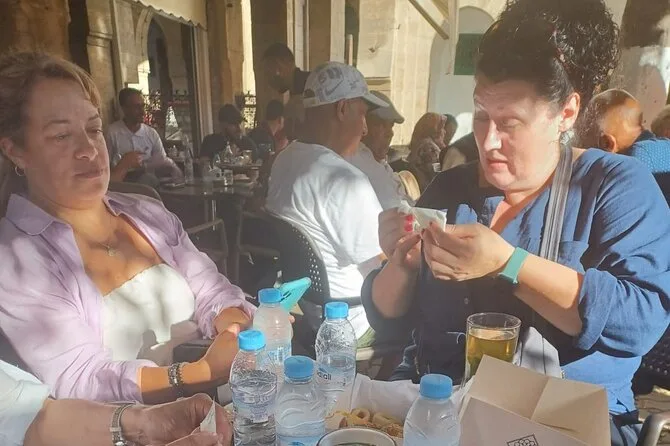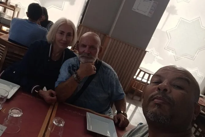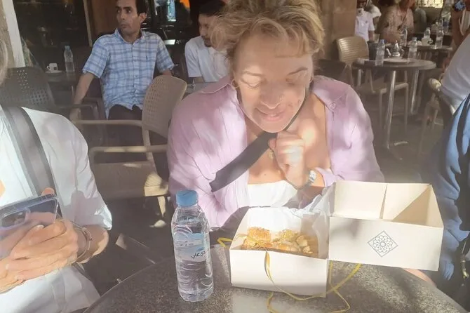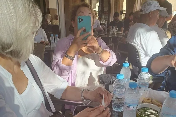 No Marché Central, era pura cor e barulho: peixeiros anunciando preços, montes de hortelã fresca por todo lado e um cara vendendo carne de cavalo (isso me surpreendeu). Nosso guia mostrou uma barraca antiga que ainda vende rádios antigos — fácil passar batido se você não prestar atenção. Compramos algumas azeitonas e vimos os locais negociando sardinhas.