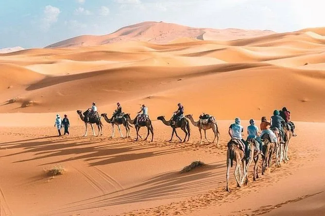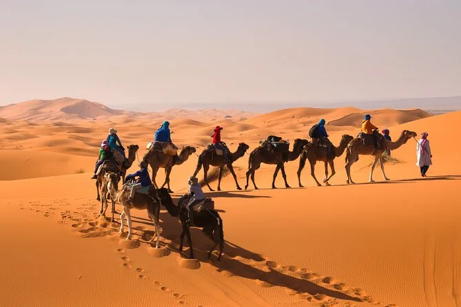 Você vai caminhar pelas ruas pintadas de azul em Chefchaouen, se perder entre temperos e sons na medina de Fes, andar de camelo pelas dunas do Saara perto de Merzouga para uma noite sob as estrelas, e terminar provando água de rosas após cruzar os picos do Atlas rumo a Marrakech — tudo com guias locais, transporte privado, estadias em riads e transfer do aeroporto incluídos. Este tour pelo Marrocos deixa mais perguntas do que respostas — e no melhor sentido.