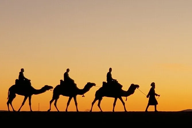 Sua viagem inclui transfer do aeroporto ou hotel na chegada e na saída; nove noites de hospedagem entre hotéis e riads tradicionais marroquinos; água mineral durante os dias de passeio; transporte privado com combustível; passeios guiados em Fes e Marrakech; uma noite em acampamento de luxo no deserto após o passeio de camelo pelas dunas do Saara — além de muitos momentos especiais que não aparecem no roteiro.