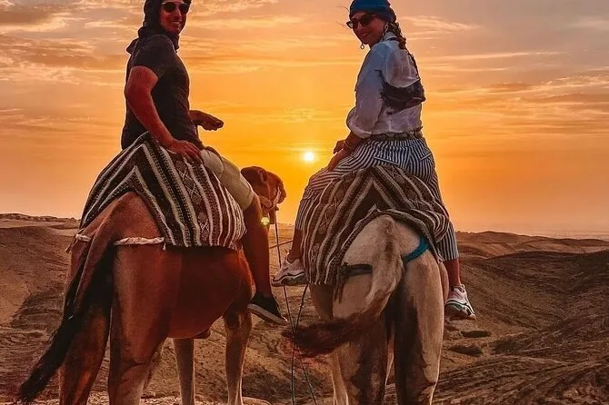 Deixe Marrakech para trás e passe uma noite no Deserto de Agafay — andando de camelo ao pôr do sol, tomando chá com os locais, saboreando tagine feito devagar sob as estrelas e curtindo música ao vivo ao redor da fogueira. Com traslado do hotel incluso e um guia que mais parece um amigo, você vai viver momentos de calor humano marroquino que não esperava.