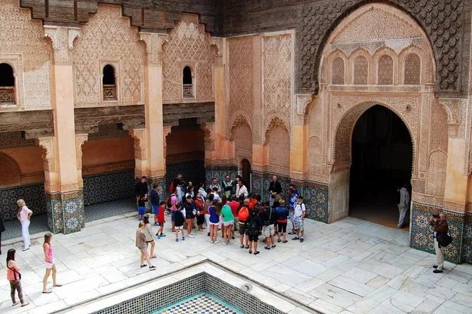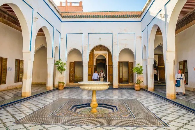 Seu dia inclui horários flexíveis de saída pela manhã ou tarde com traslado de ida e volta do hotel dentro do centro de Marrakech (até 6 km), transporte em veículo com ar-condicionado pelos principais pontos da cidade, incluindo paradas opcionais no Jardim Majorelle (entrada à parte), Palácio Bahia, área da Mesquita Koutoubia, portão Bab Agnaou no bairro da Kasbah, praça Djemaa el-Fna com seus movimentados souks — tudo conduzido por um guia multilíngue profissional, se essa opção for escolhida.