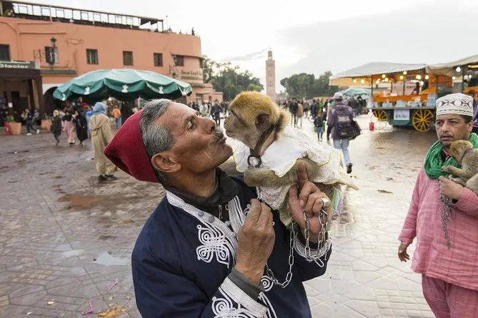 Você vai explorar as ruas vibrantes de Marrakech com um guia local, se encantar com as cores e aromas do Jardim Majorelle, se perder nos corredores iluminados do Palácio Bahia e mergulhar na energia da praça Jemaa el-Fna e seus souks. Risadas, surpresas e muitas histórias te acompanham — aqui o passeio é mais que turismo, é uma experiência pessoal.