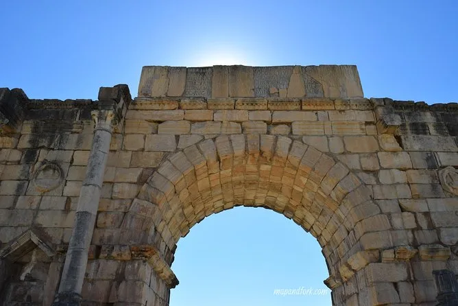 Andar por Volubilis com nosso guia foi como folhear um livro de história, só que dava para tocar os mosaicos no chão e sentir o sol aquecendo aquelas pedras antigas. Ele apontou o Arco de Caracala e explicou como os romanos escolheram esse lugar pela terra fértil. Ouvi os pássaros cantando entre as oliveiras e, por um instante, foi fácil imaginar a vida movimentada ao redor do fórum há séculos. O local estava tranquilo — só alguns visitantes e um fazendeiro local guiando seu burro na beira das ruínas.