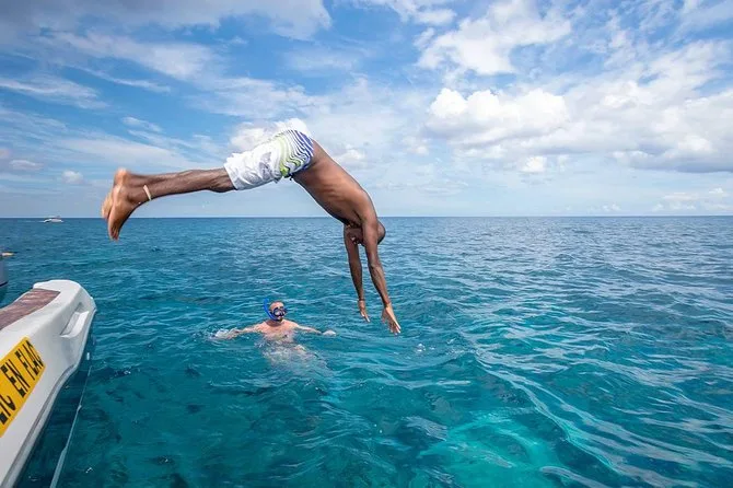 Seu dia inclui transporte do hotel em qualquer lugar de Maurício, todo o trajeto em veículo com ar-condicionado até a vila de Tamarin, onde você embarca em um catamarã de 12 metros com guia e equipe local. Você vai observar golfinhos na Baía de Tamarin, fazer snorkel em Crystal Rock com equipamento fornecido, aproveitar bebidas ilimitadas a bordo (vinho, cerveja e rum local), um almoço fresco com churrasco com opções vegetarianas e não vegetarianas, além de sobremesa, antes de relaxar nas praias da Ilha Bénitiers e retornar à sua acomodação.
