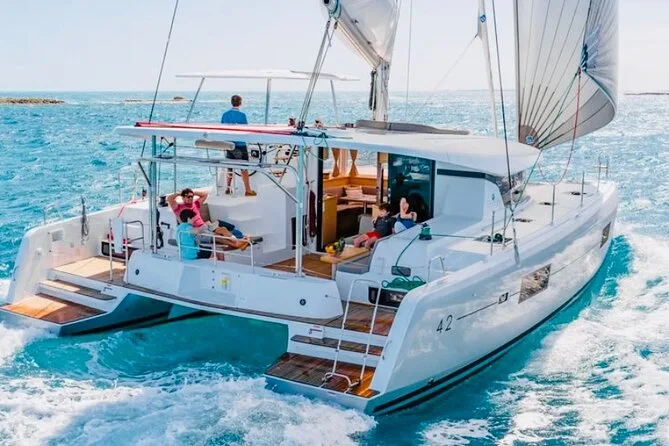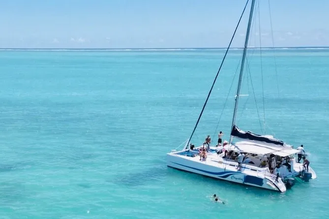 O seu dia inclui traslado privativo com veículo com ar-condicionado, passeio de catamarã de dia inteiro saindo de Trou d’Eau Douce até Ile Aux Cerfs com parada na cachoeira Grand River South East, bebidas ilimitadas (alcoólicas e não alcoólicas), petiscos a bordo, uso de equipamento de snorkel e um almoço BBQ mauriciano fresquinho na ilha antes do retorno à tarde.
