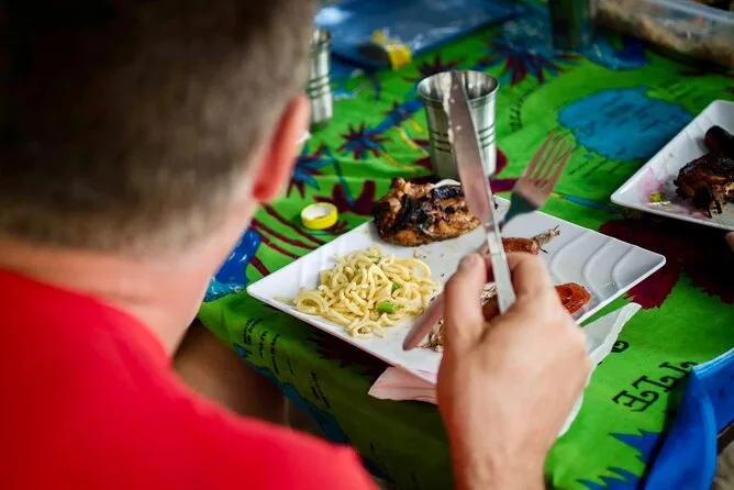 Você vai saborear um almoço tradicional mauriciano preparado na hora, estilo churrasco.