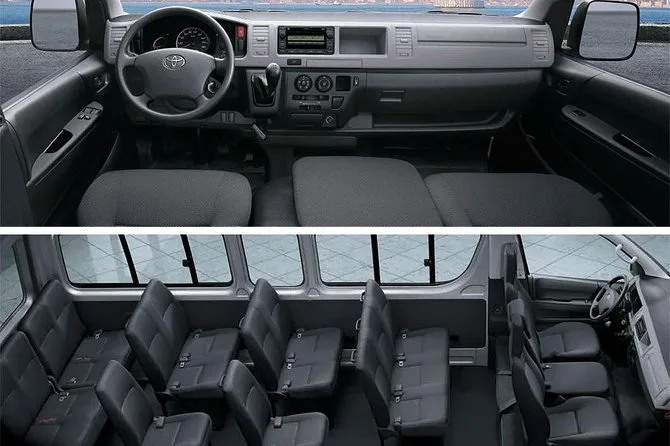 A van acomoda até 8 pessoas; para grupos maiores, há opções para até 10 viajantes.