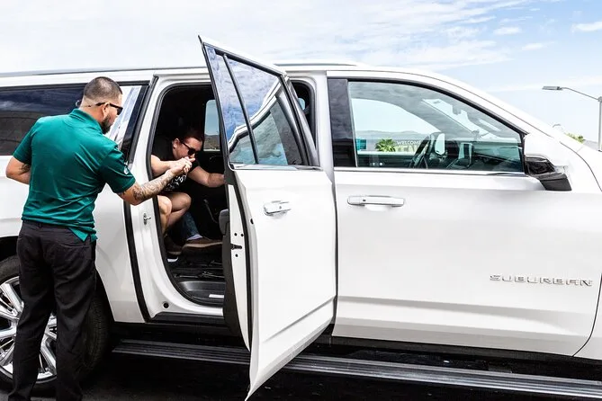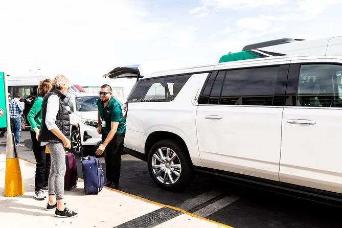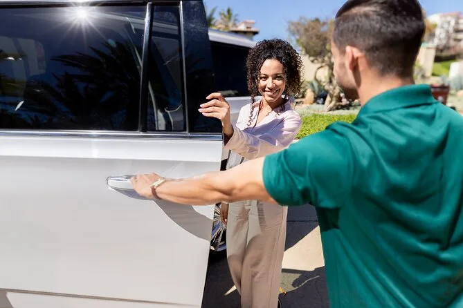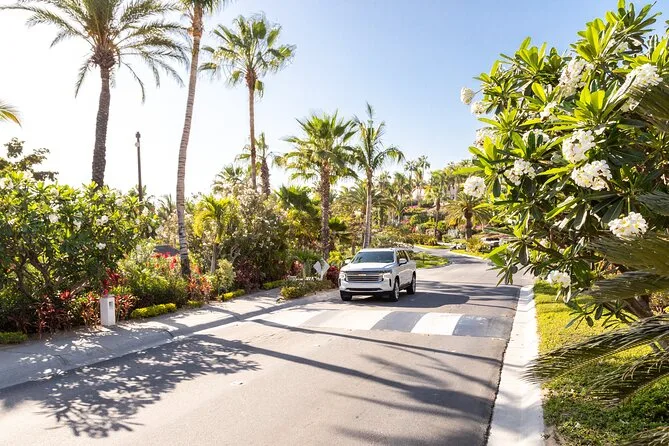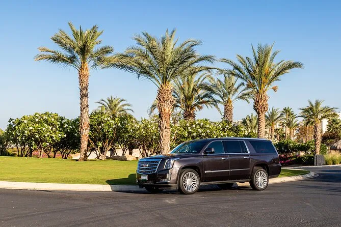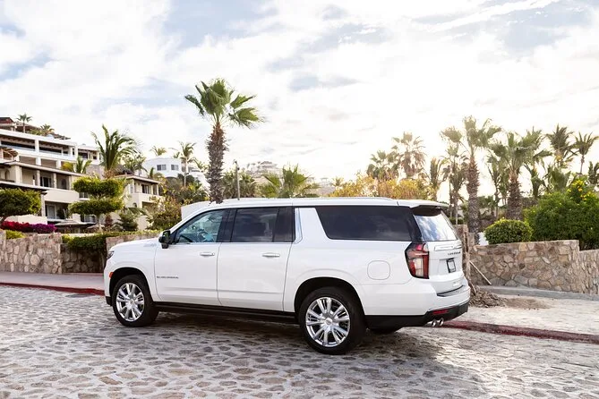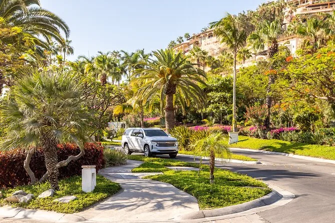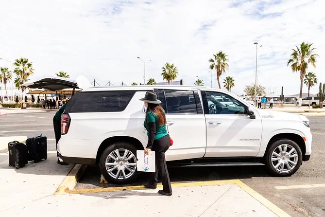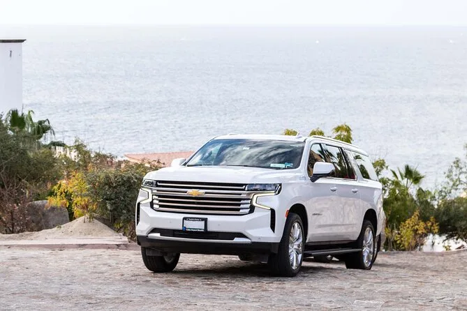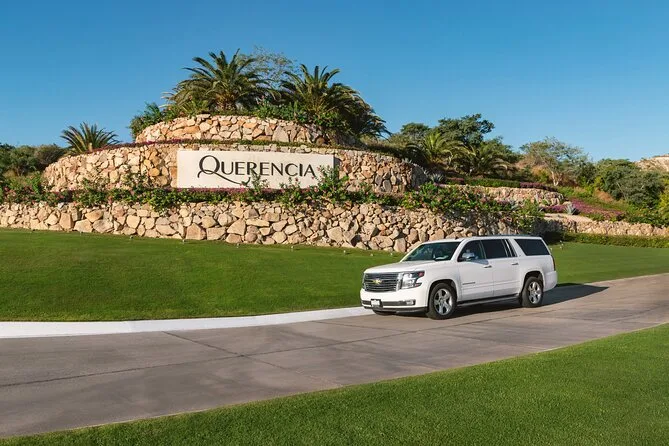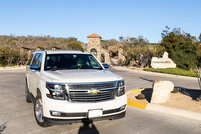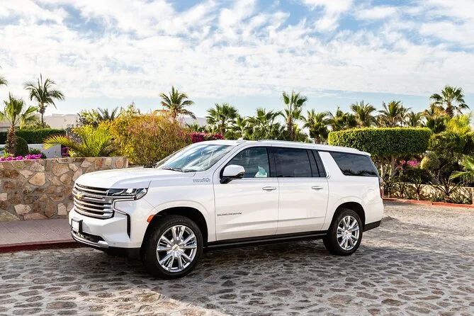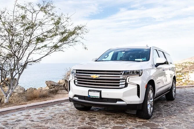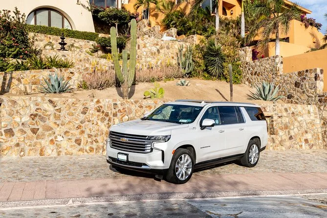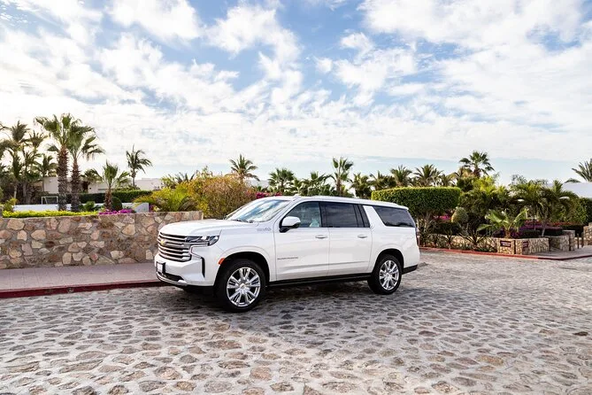 Sua reserva inclui transporte privado ida e volta em SUV com ar-condicionado do Aeroporto de Los Cabos até seu hotel no Corredor Turístico (e retorno), todos os impostos e taxas inclusos, além de água e cervejas geladas à sua espera no carro — é só relaxar e deixar o motorista local cuidar de tudo, da recepção até o desembarque.