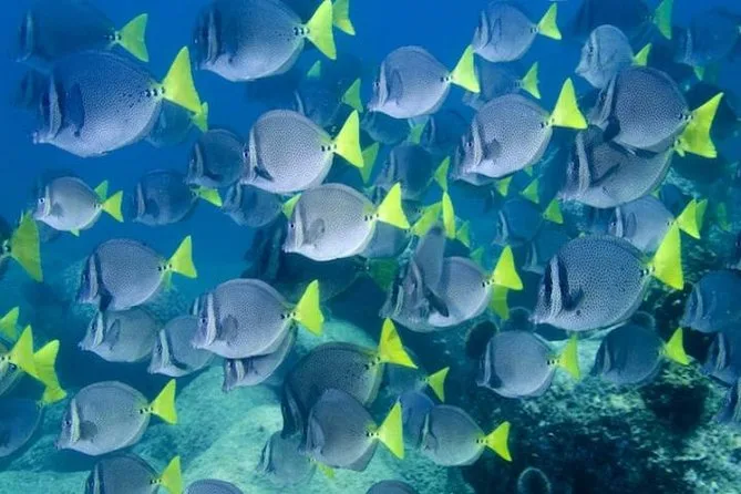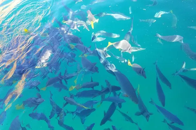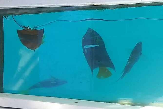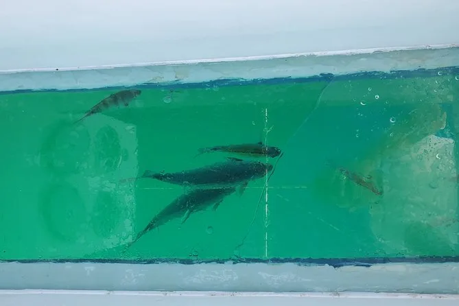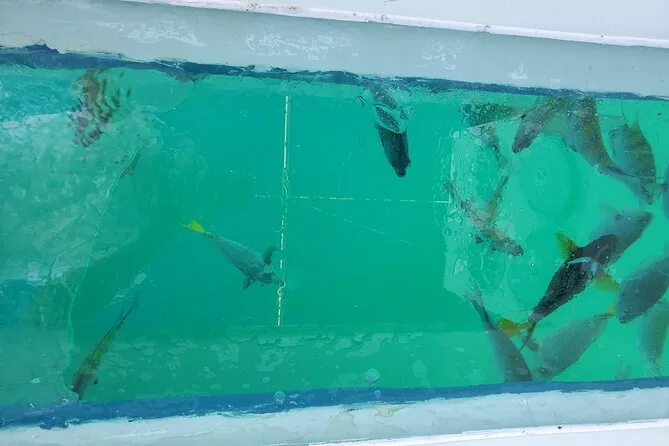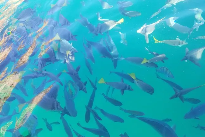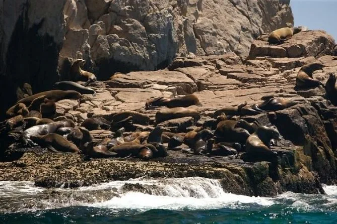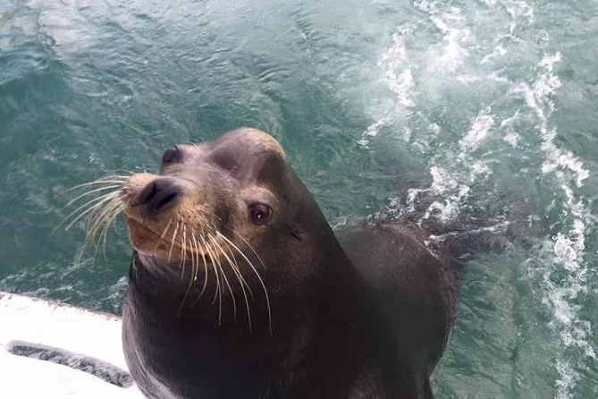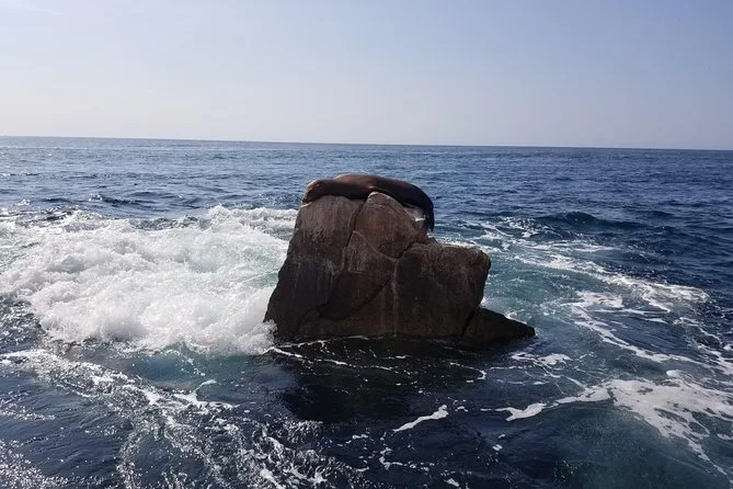 Você deve ver leões-marinhos na colônia e vários peixes pela janela de vidro do barco.
