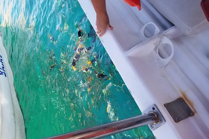 Paramos na Praia do Amor para quem quisesse descer e nadar — mas hoje conferiram antes se estava aberta, porque às vezes a maré alta fecha por segurança. Alguns ficaram no barco; eu aproveitei para pisar naquela areia que parecia pó de tão macia. Tinha um cheirinho leve de protetor solar no ar (e talvez uns tacos de camarão vindo da bolsa de alguém?). Quando voltamos, El Capitán brincou falando dos “Nemo e seus amigos” nadando lá embaixo — ele até tentou apontar um peixe pela janela, mas acho que meus óculos estavam meio sujos para eu enxergar direito.
