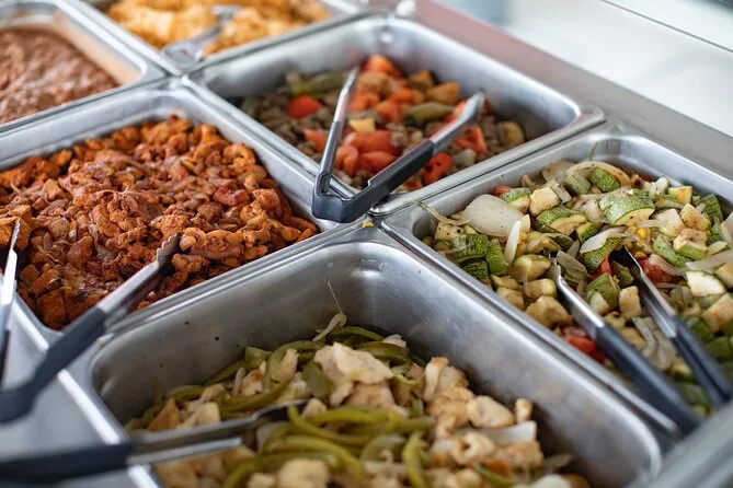 Sim, um buffet de tacos mexicanos com opções vegetarianas é servido após o snorkel.
