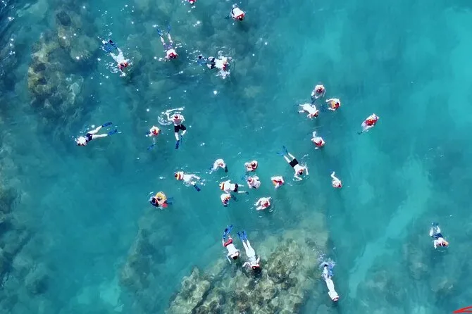 O seu dia inclui uso de equipamento para snorkel nas baías Chileno ou Santa María, bebidas nacionais ilimitadas no bar aberto durante a navegação pela costa de Cabo San Lucas, além de um buffet fresco de tacos mexicanos com opções vegetarianas — tudo guiado por locais simpáticos, com retorno ao porto após 3,5 horas.