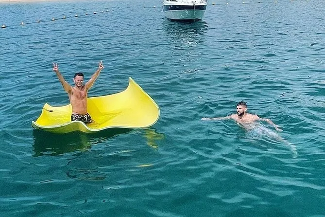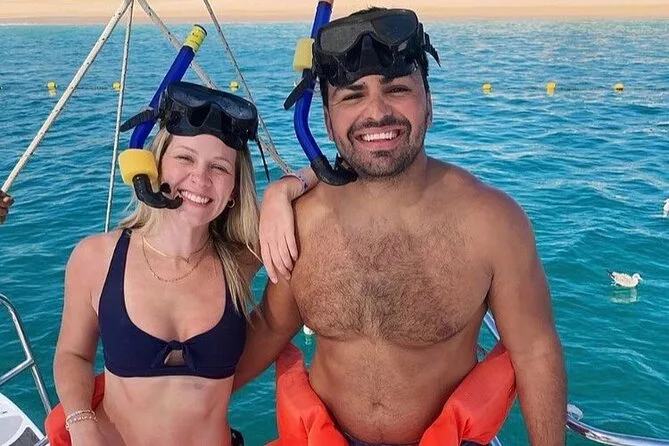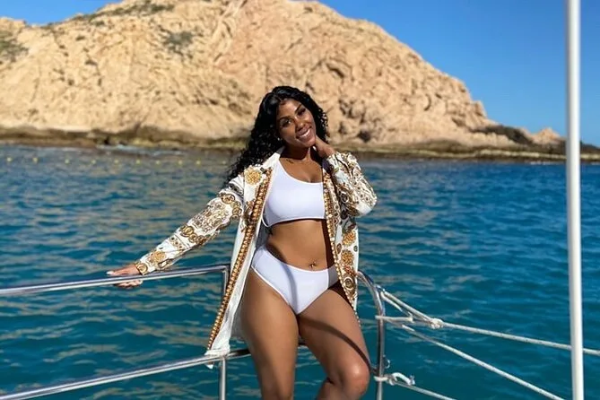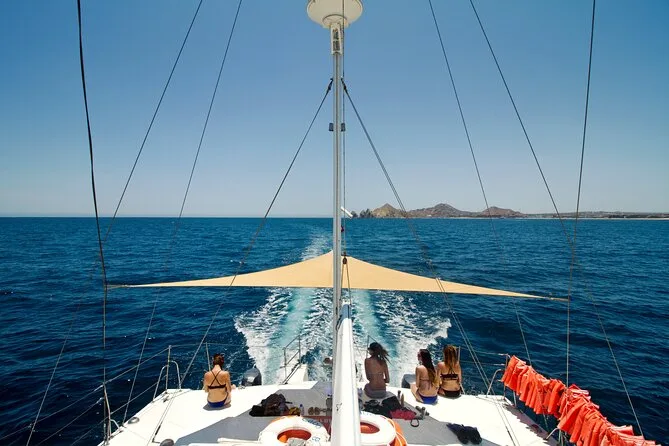 Seu dia inclui embarque no píer principal da marina de Cabo com uma equipe local simpática recebendo você a bordo de um trimaran espaçoso. Você terá todo o equipamento de snorkel à disposição, além de pranchas de stand up e um tapete flutuante quando o mar permitir. O almoço é preparado a bordo — pense em baguetes de peru com acompanhamentos como guacamole e frutas — e há bar aberto com bebidas durante todo o passeio antes do retorno ao porto em Cabo San Lucas.