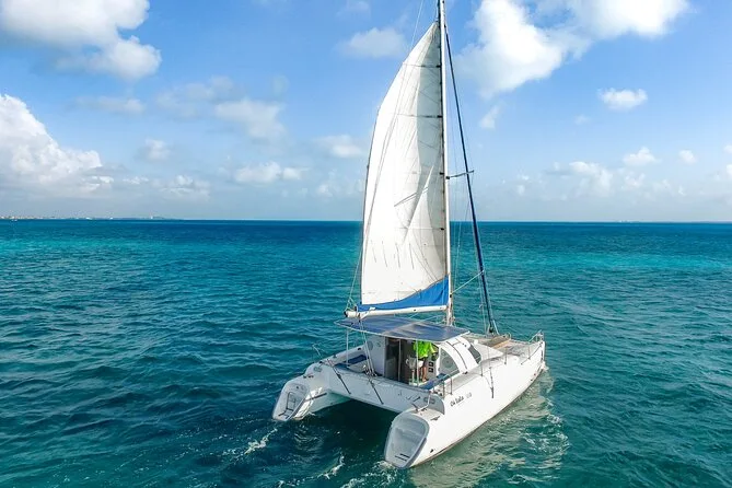 Você vai sentir o cheiro do mar navegando de Cancún num catamarã privado com seu grupo, fazendo snorkel no recife Manchones e explorando esculturas subaquáticas antes de nadar na areia macia da Playa Norte. Com bebidas liberadas e música local ao fundo, vai terminar relaxado e com a pele dourada — talvez já planejando a próxima viagem.
