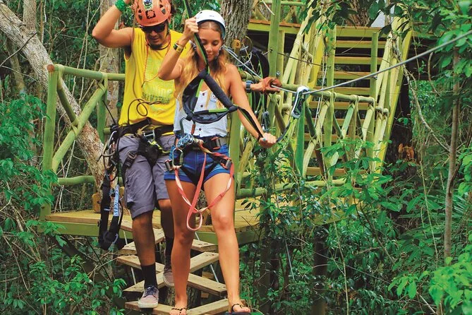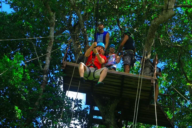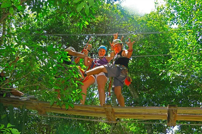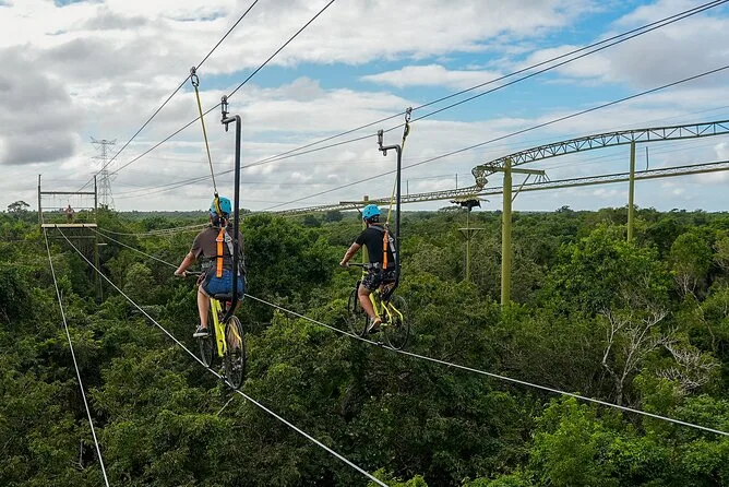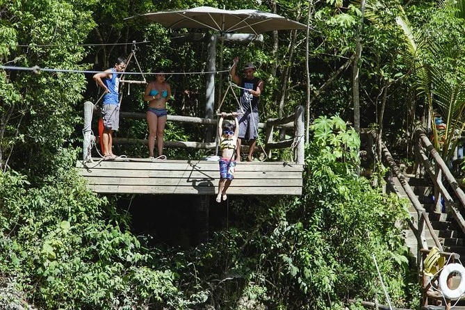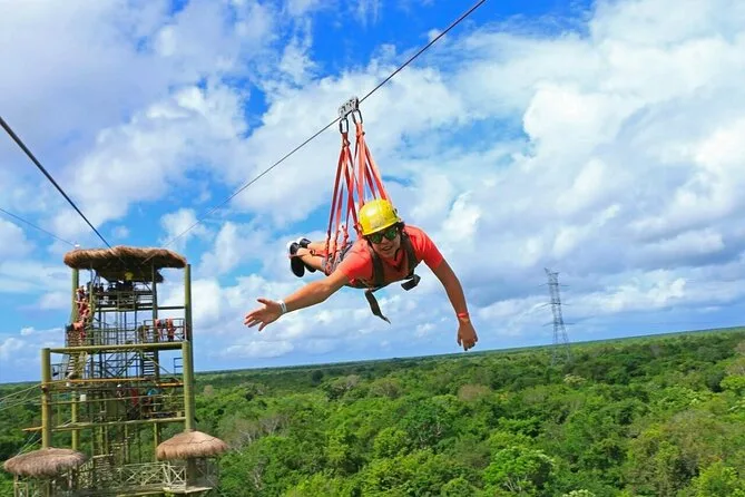 Seu dia inclui transporte de ida e volta (se selecionado na reserva), guias locais experientes que cuidam de todo o equipamento de segurança para tirolesas e ATVs, acesso a dez tirolesas mais a tirolesa Tarzania e Aquazip conforme o pacote escolhido, um mergulho refrescante em cenote natural, lanche leve com água durante as atividades, almoço reforçado após as aventuras — e muitas risadas antes de voltar para a cidade.