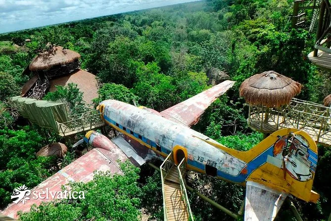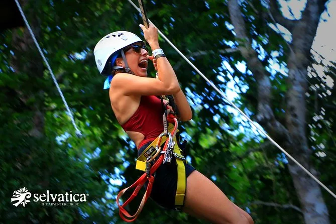 Seu dia inclui traslado do hotel em Cancún ou Riviera Maya, entrada no Selvatica Adventure Park com acesso a todas as 10 tirolesas (mais o banho opcional no AquaZip), passeio guiado de jipe pela selva, tempo para nadar em um cenote privado, água mineral durante o dia e um almoço leve antes do retorno.