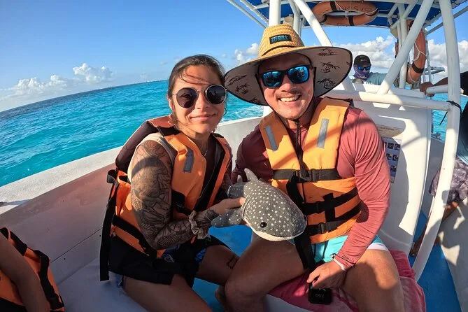 Você sai cedo de Cancún ou Riviera Maya, vai de barco nadar com tubarões-baleia tranquilos em mar aberto com guia especialista. Depois do snorkel, relaxe na Playa Norte de Isla Mujeres com um almoço fresco de ceviche antes de se refrescar nas águas turquesa ou só curtir o sol — lembranças que ficam muito depois da pele salgada secar.