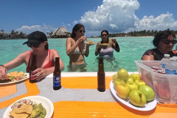 O almoço é servido ancorados na praia Playa Norte em Isla Mujeres, depois do snorkel.