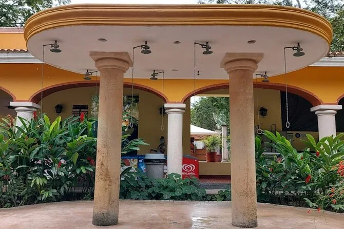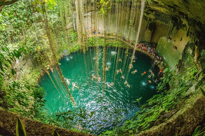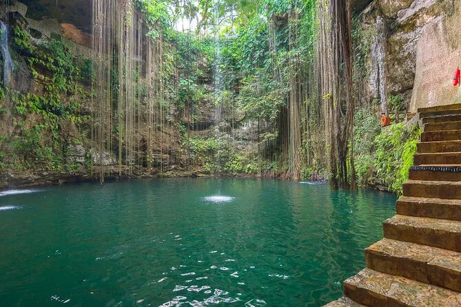Seu dia inclui transporte ida e volta saindo de Mérida com cooler para bebidas geladas, visitas guiadas em cada parada (em inglês ou espanhol), ingresso e colete para nadar no Cenote Ik Kil com armários disponíveis, além de almoço buffet com pratos mexicanos — incluindo opções vegetarianas — e uma bebida, antes do retorno à noite.