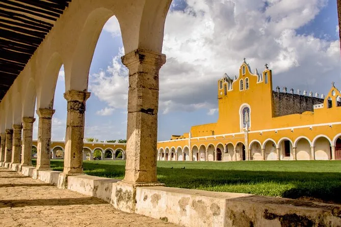 Sim, há um passeio guiado pela praça principal e convento de Izamal, além de tempo livre para explorar.
