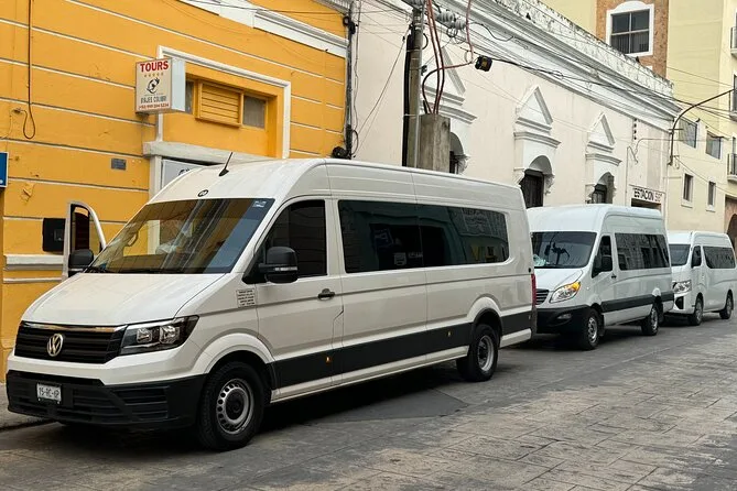 Não há busca no hotel; o ponto de encontro é em um dos três locais em Mérida onde você embarca na van.