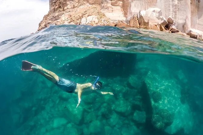 Comece o dia com uma recepção local em La Paz antes de embarcar num catamarã francês rumo à Praia de Balandra. Faça snorkel com leões marinhos brincalhões, explore enseadas de caiaque e aproveite um almoço caseiro com bebidas a vontade a bordo. Não é só nadar — é sentir o sol na pele e o sal da Baja no cabelo, uma sensação que fica para sempre.