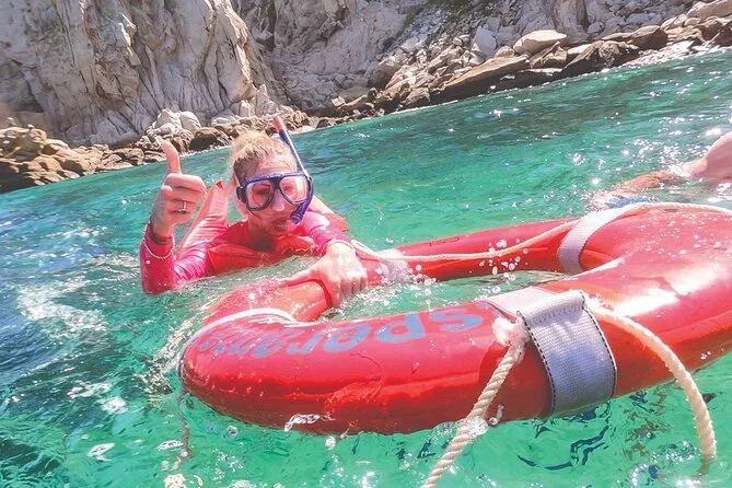 Você vai passear de barco com fundo de vidro pelo Arco de Cabo e pela colônia de leões-marinhos antes de fazer snorkel nos recifes de Pelican Rock com um guia local. O almoço é simples, mas perfeito depois do mergulho, seguido de degustação de tequila e tempo livre para explorar as lojas de San Lucas. Espere ar salgado, risadas e momentos que ficam para sempre.