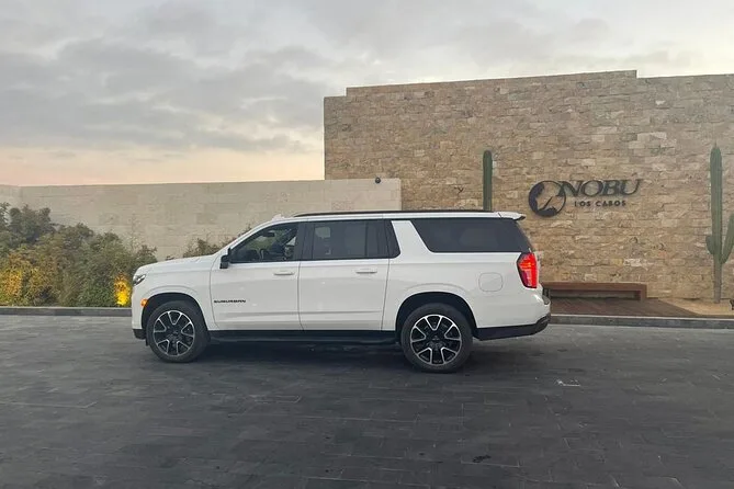 Seu transfer privado inclui busca no Aeroporto de Los Cabos por um motorista local com uma placa com seu nome, viagem em veículo com ar-condicionado (Suburban ou Hiace, conforme o mais próximo), além de água mineral gratuita para todos durante o trajeto até o hotel.