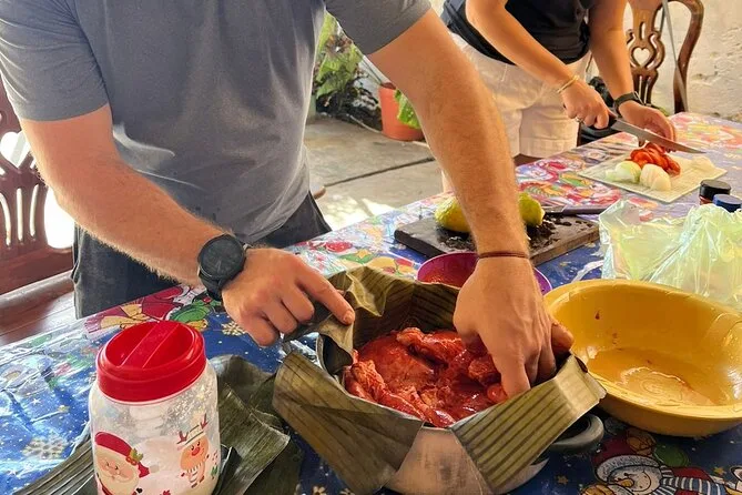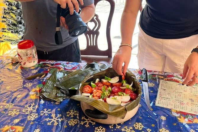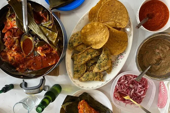 Você vai passear pelo movimentado mercado de Mérida, provar frutas e conversar com os locais antes de ir para uma cozinha de verdade, onde vai aprender uma aula prática de culinária iucateca. Compre ingredientes frescos juntos, aprenda receitas de família passo a passo e depois sente para almoçar como novos amigos — sabores que vão ficar na sua memória muito tempo depois da viagem.