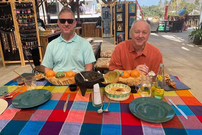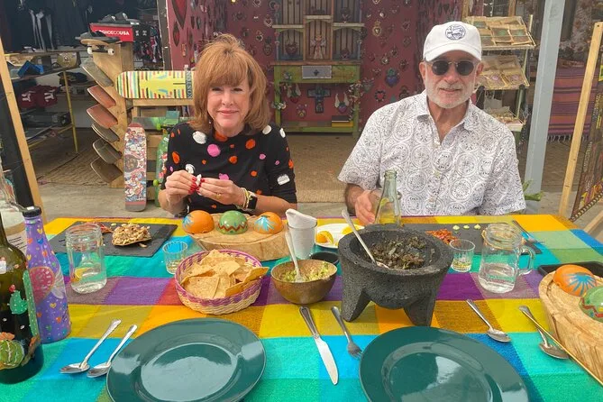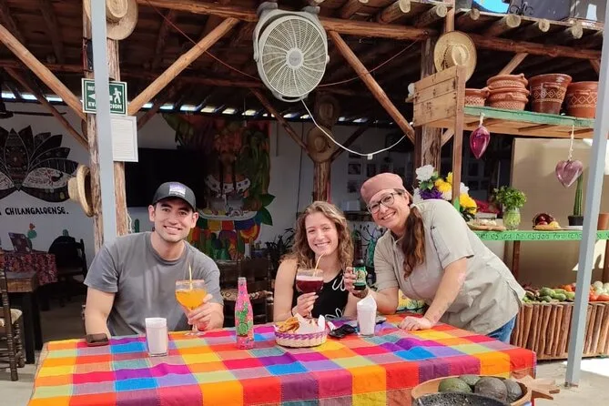 Seu dia inclui brunch mexicano à vontade com pratos regionais de Puebla a Oaxaca, margaritas ilimitadas em vários sabores (e mojitos), uma massagem relaxante de 30 minutos à sua escolha (reflexologia na cabeça/pescoço/costas ou nos pés), petiscos durante o passeio e um acolhimento caloroso do início ao fim.