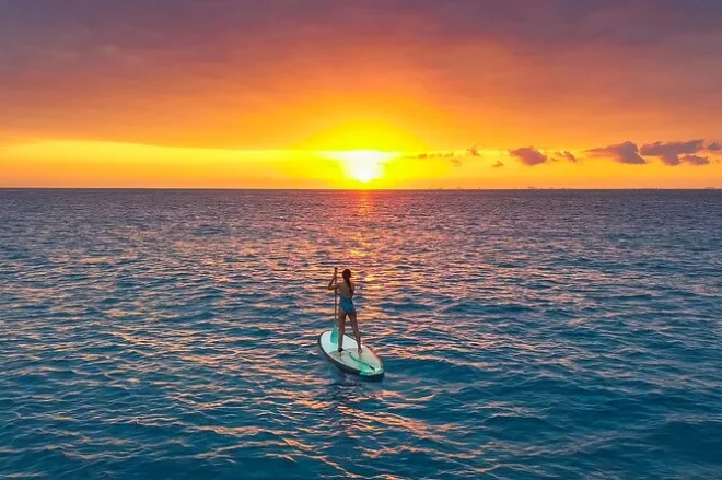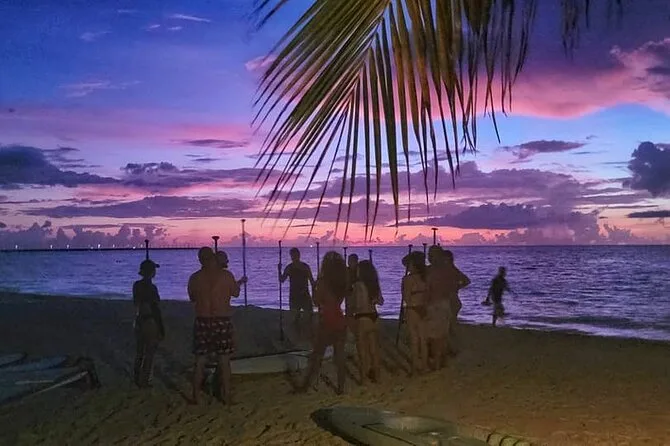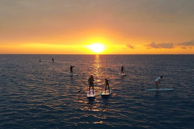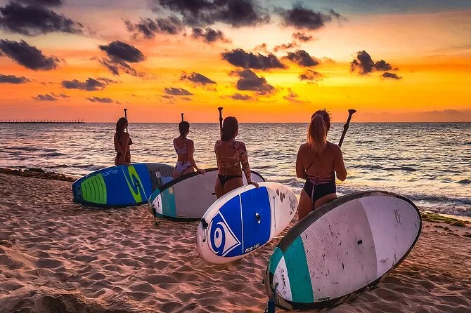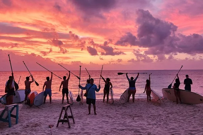 Encontre seu guia no beach club de Playa del Carmen antes do amanhecer para um tour de stand up paddle nas águas calmas do Caribe. Após uma rápida instrução, deslize enquanto o sol nasce – com fotos em grupo durante o passeio – e termine relaxando ou tomando café à beira-mar. É uma experiência tranquila, vibrante e que faz você sentir que já viveu o dia inteiro antes de muita gente acordar.
