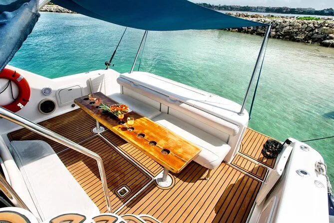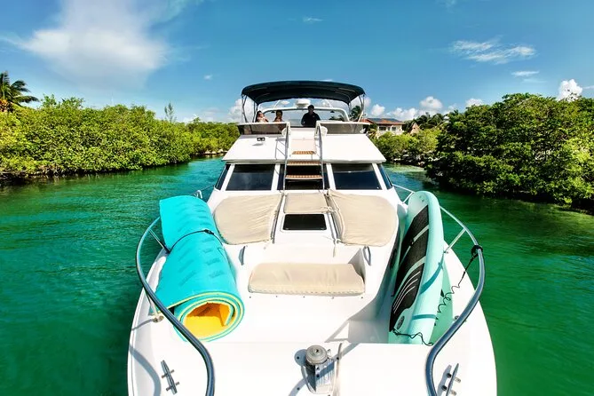 Seu dia começa com o embarque na marina de Puerto Aventuras por uma equipe local simpática antes de zarpar no seu iate privado de 14 metros. Use o equipamento de snorkel e o stand up paddle. Aproveite o open bar com cerveja, destilados e sucos, além de guacamole fresquinho com fajitas de frango ou ceviche de camarão servidos a bordo, antes de voltar ao porto após quatro horas no mar.