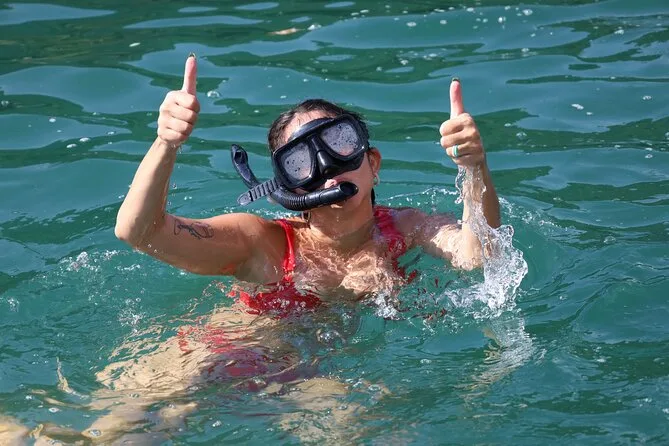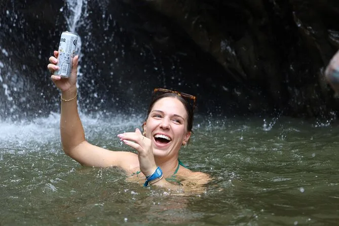 Primeira parada: Quimixto. Não sou muito de pular de lugares altos, mas lá estava eu, incentivado por estranhos que viraram amigos, pulando do segundo andar para uma água mais fria do que eu esperava. O equipamento de snorkel estava incluído (graças a Deus — sempre esqueço o meu), e debaixo d’água era só peixes prateados e vozes abafadas lá em cima. De volta ao barco, apareceu guacamole do nada — com chips de milho azul — e alguém me convenceu a experimentar uma piña colada antes do meio-dia. Sem arrependimentos.