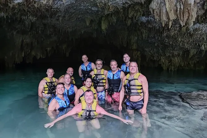 Seu meio dia inclui traslado privado de ida e volta na Riviera Maya, entrada para um cenote isolado não aberto ao público, uso de equipamento de snorkel e coletes salva-vidas, além de bebidas e lanches após o mergulho para você voltar relaxado — e talvez ainda molhado.