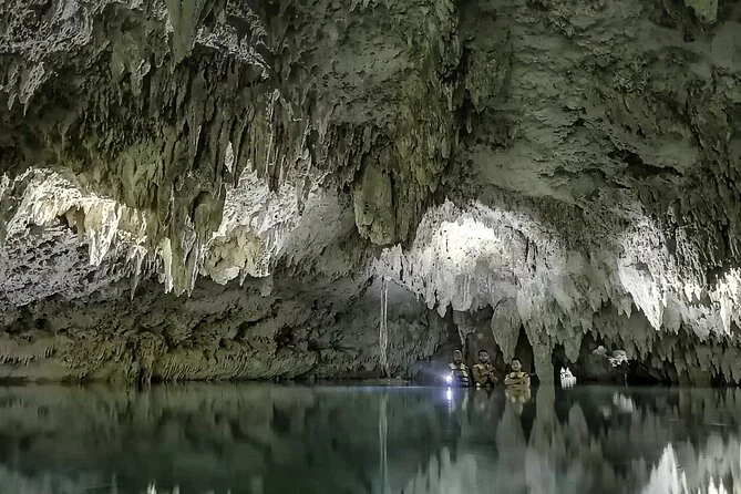 Você vai mergulhar em águas cristalinas dentro de um cenote privado na Riviera Maya — sem multidões, só seu grupo e um guia local. Nade entre formações rochosas milenares, ouça histórias sobre os rios subterrâneos, aproveite lanches típicos e sinta uma tranquilidade rara que só esse lugar oferece.