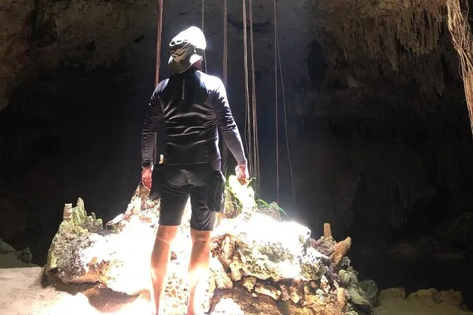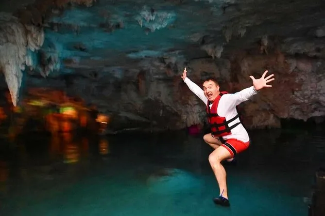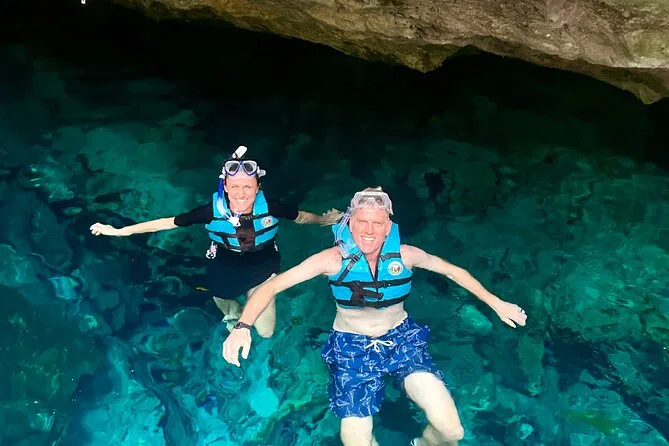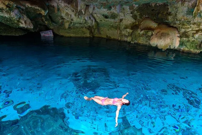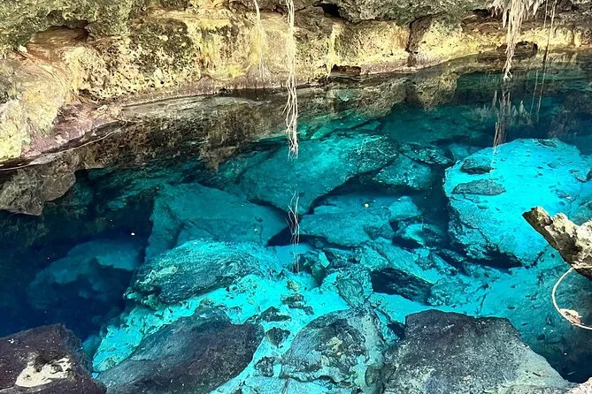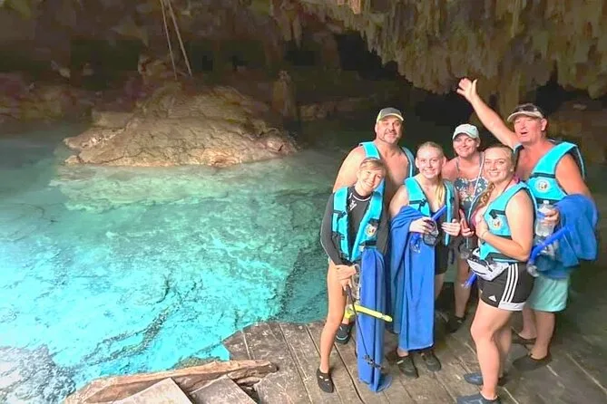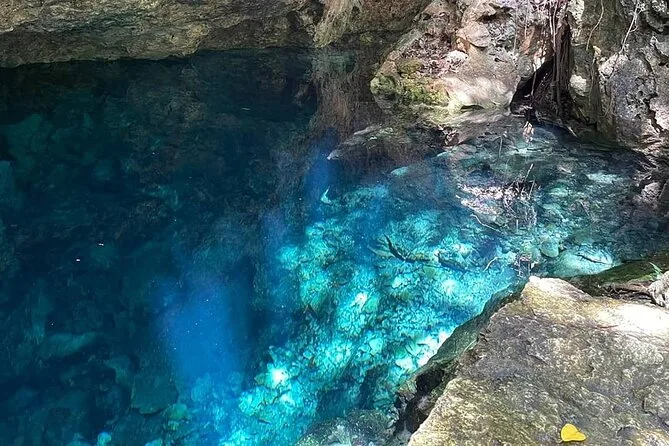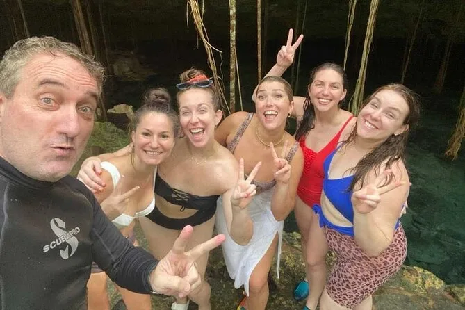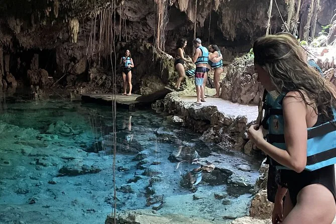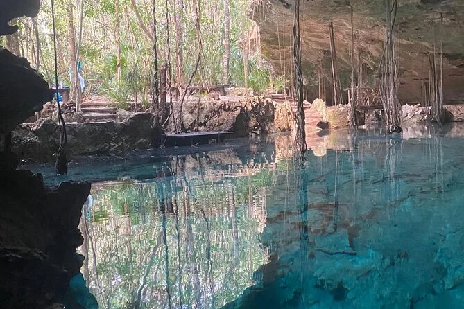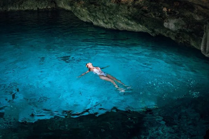 Seu dia inclui transporte ida e volta de Playa del Carmen ou Tulum, acesso a cinco cenotes privados com coletes e óculos, todas as entradas pagas, água mineral durante o passeio e uma refeição completa com água de fruta fresca em restaurante internacional antes do retorno.