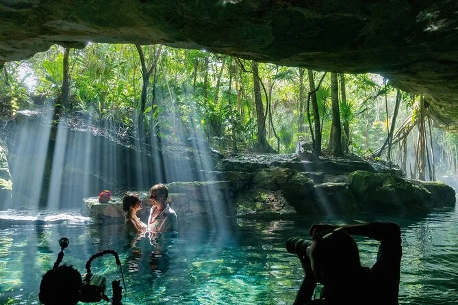 Você vai nadar em cinco cenotes isolados perto de Playa del Carmen, guiado por alguém que conhece cada cantinho dessas piscinas na selva. Transporte incluso, além de coletes salva-vidas e óculos para quem quiser. Depois de explorar o lado mais tranquilo da Riviera Maya, você termina com uma refeição local fresquinha e água de fruta — conforto simples depois de uma aventura verdadeira.