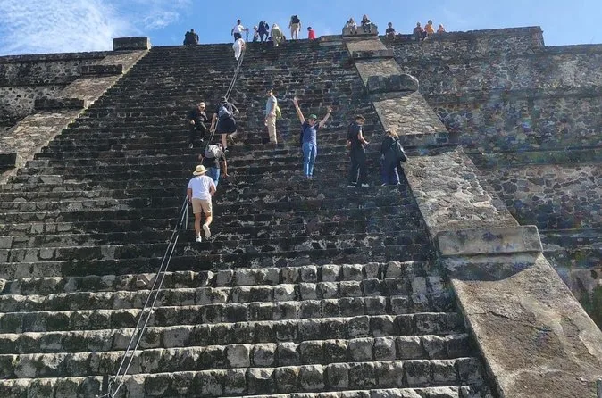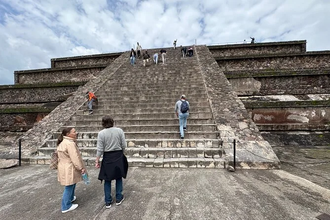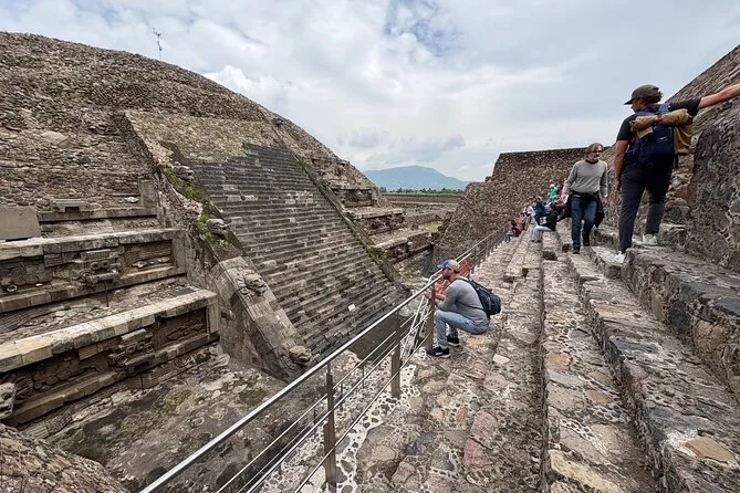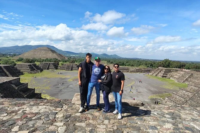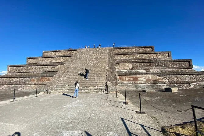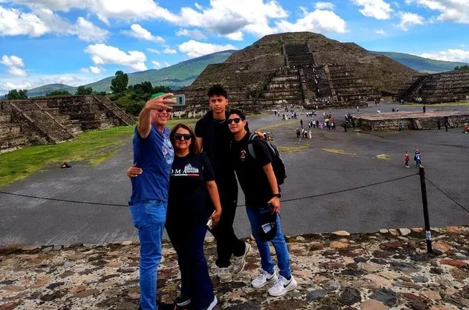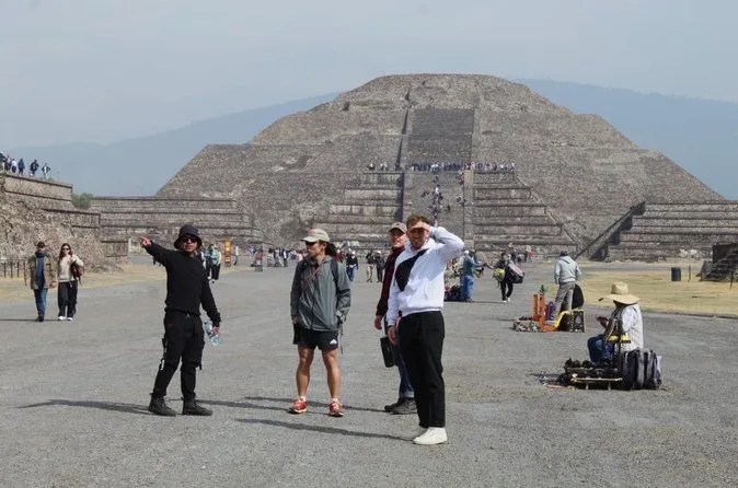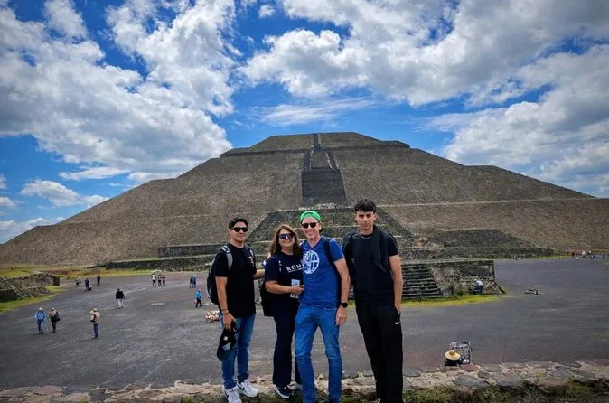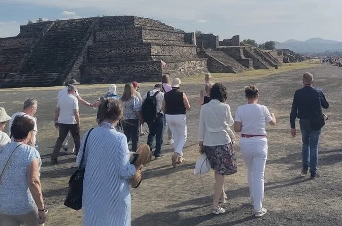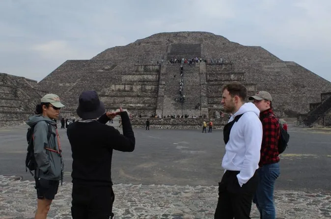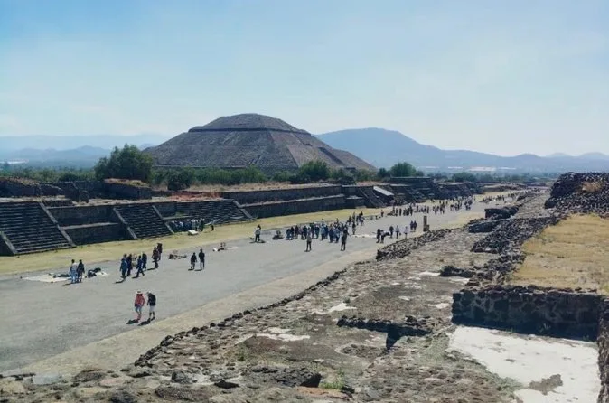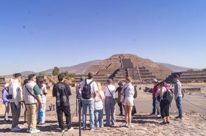 O dia inclui transporte ida e volta da Cidade do México em veículos seguros com motoristas experientes focados no conforto; ingressos para Teotihuacan; e caminhadas guiadas pelas principais avenidas e pirâmides com um guia local especialista antes de retornar juntos à cidade.