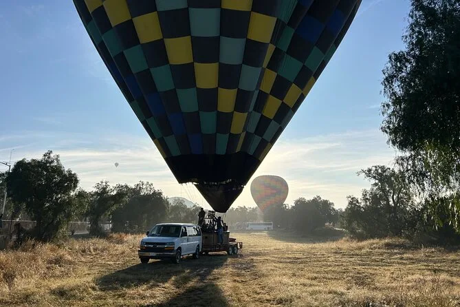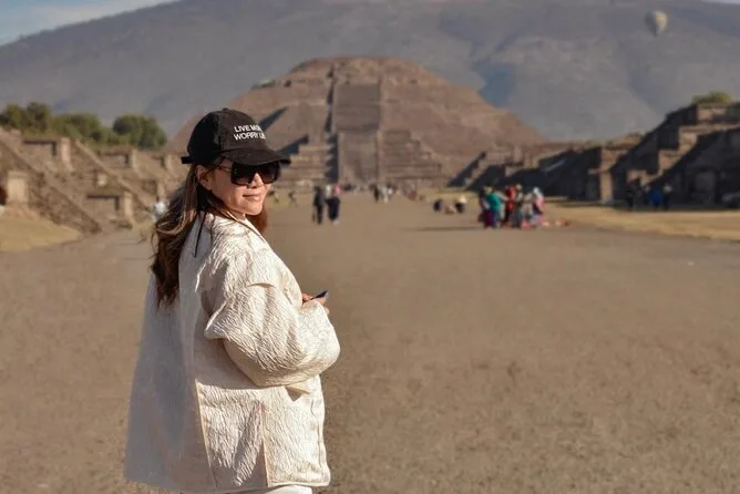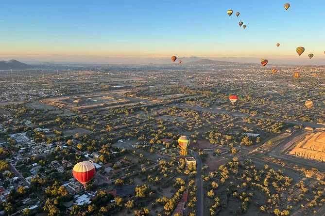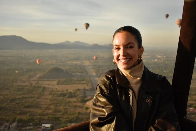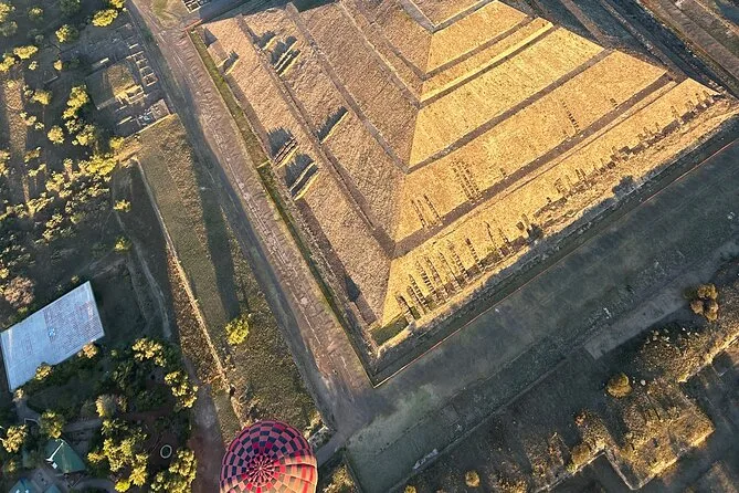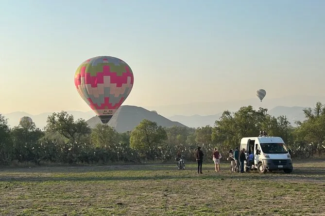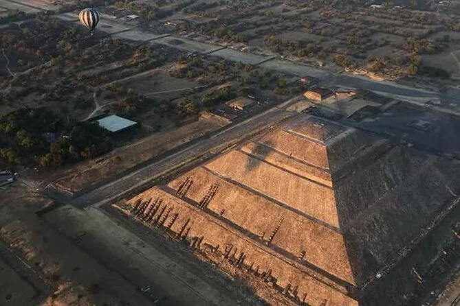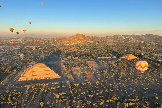 Seu dia inclui voo compartilhado de balão sobre Teotihuacan com reservas feitas pela equipe, transporte ida e volta da Cidade do México, tempo para café no Restaurante La Gruta (comida não incluída) e tempo livre para explorar a área arqueológica antes de voltar ao meio-dia.