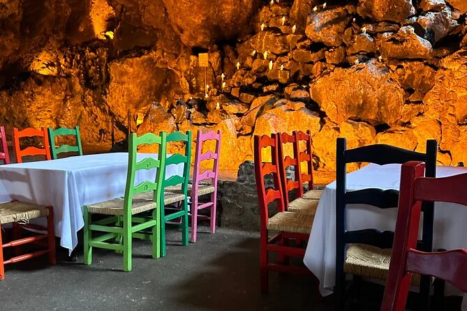 Depois que pousamos (mais suave do que eu esperava), entramos numa van e fomos para o Restaurante La Gruta. Ele fica dentro de uma caverna — você desce uns degraus de pedra e, de repente, está lá dentro, com a luz do sol entrando pela entrada. O cheiro lá embaixo é uma mistura de fumaça de lenha com tortilhas. O grupo pediu o que parecia bom; eu escolhi chilaquiles porque alguém disse que é o que os locais comem depois de manhãs assim. A Li riu quando tentei dizer “gracias” com a boca cheia — acho que mereci.