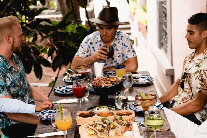 O dia inclui transporte em veículo de luxo com ar-condicionado e bebidas (cerveja, água e eletrólitos); ingressos para todas as paradas; degustação guiada de seis tequilas em destilaria premium; jantar em antiga hacienda (refeições não incluídas) e encerramento no Cantaritos El Güero com música e drinks.