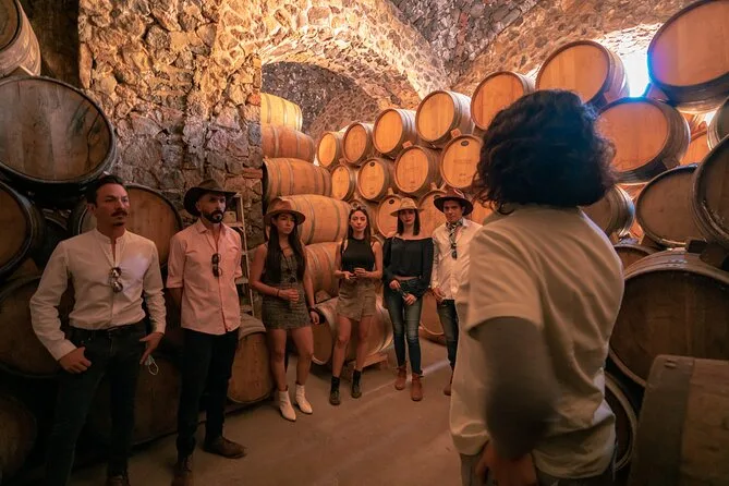 Você vai cruzar campos de agave até Tequila em um carro confortável com ar-condicionado e bebidas a bordo. Deguste seis tipos de tequila em uma destilaria premium com um guia local simpático, depois relaxe com um jantar em um jardim de hacienda antiga. O dia termina com música ao vivo e muita alegria no Cantaritos El Güero — um verdadeiro sabor da hospitalidade de Jalisco.