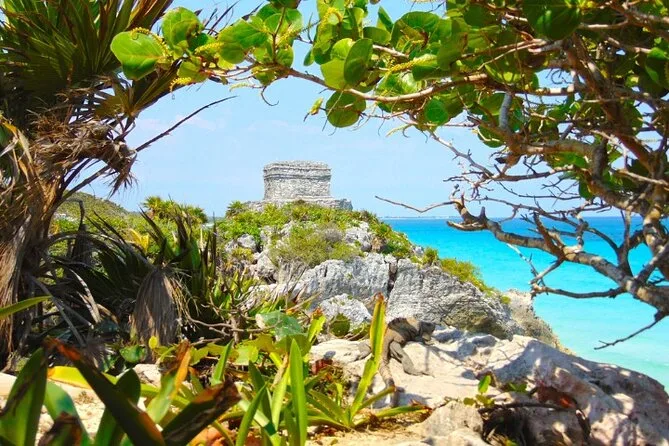 Seu dia inclui transporte ida e volta com ar-condicionado saindo de Cancun, tour guiado multilíngue nas ruínas de Tulum (com tempo livre), entrada no Cenote Mariposa com coletes e armários, além de água mineral durante o trajeto para o retorno confortável.