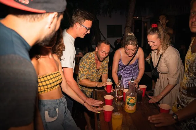 Você vai mergulhar na noite louca de Tulum com uma turma animada — pense em pintura no rosto, jogos de beber, karaokê para os corajosos, bares no rooftop com chuva de confete e muitos shots grátis pelo caminho. Guias locais garantem a diversão (e a segurança), para você fazer amigos rápido e acabar dançando em lugares que nem imaginava.